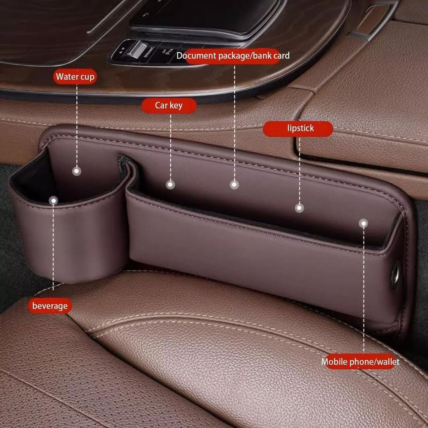 製品説明: 車用レザーカップホルダーギャップバッグ - スタイリッシュで実用的な車内オーガナイザー